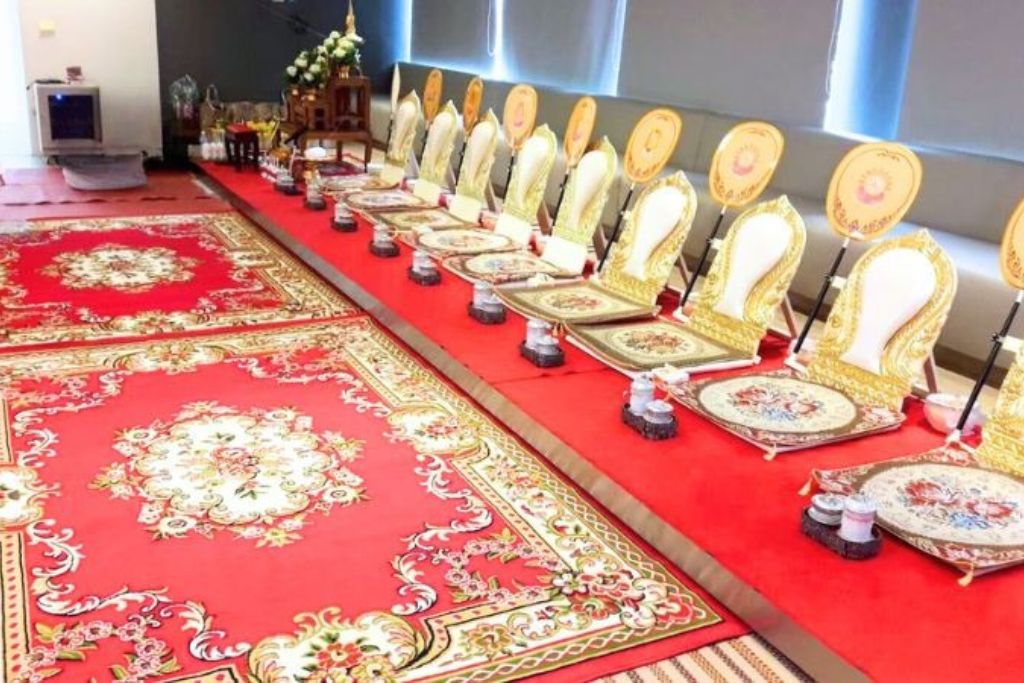 - อาสนะพระ และ พรมในพิธี