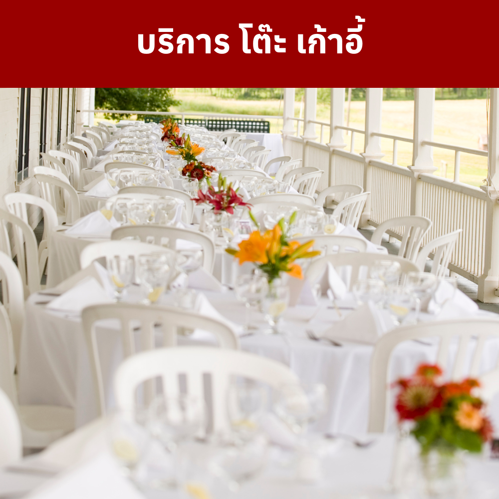 - ฟรีค่าเช่าชุดโต๊ะ เก้าอี้ ผ้าคลุมโต๊ะ