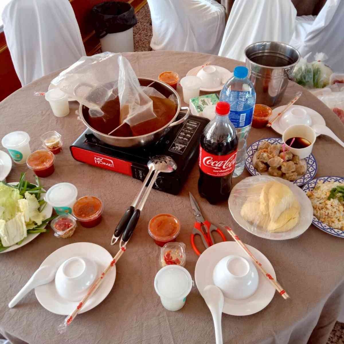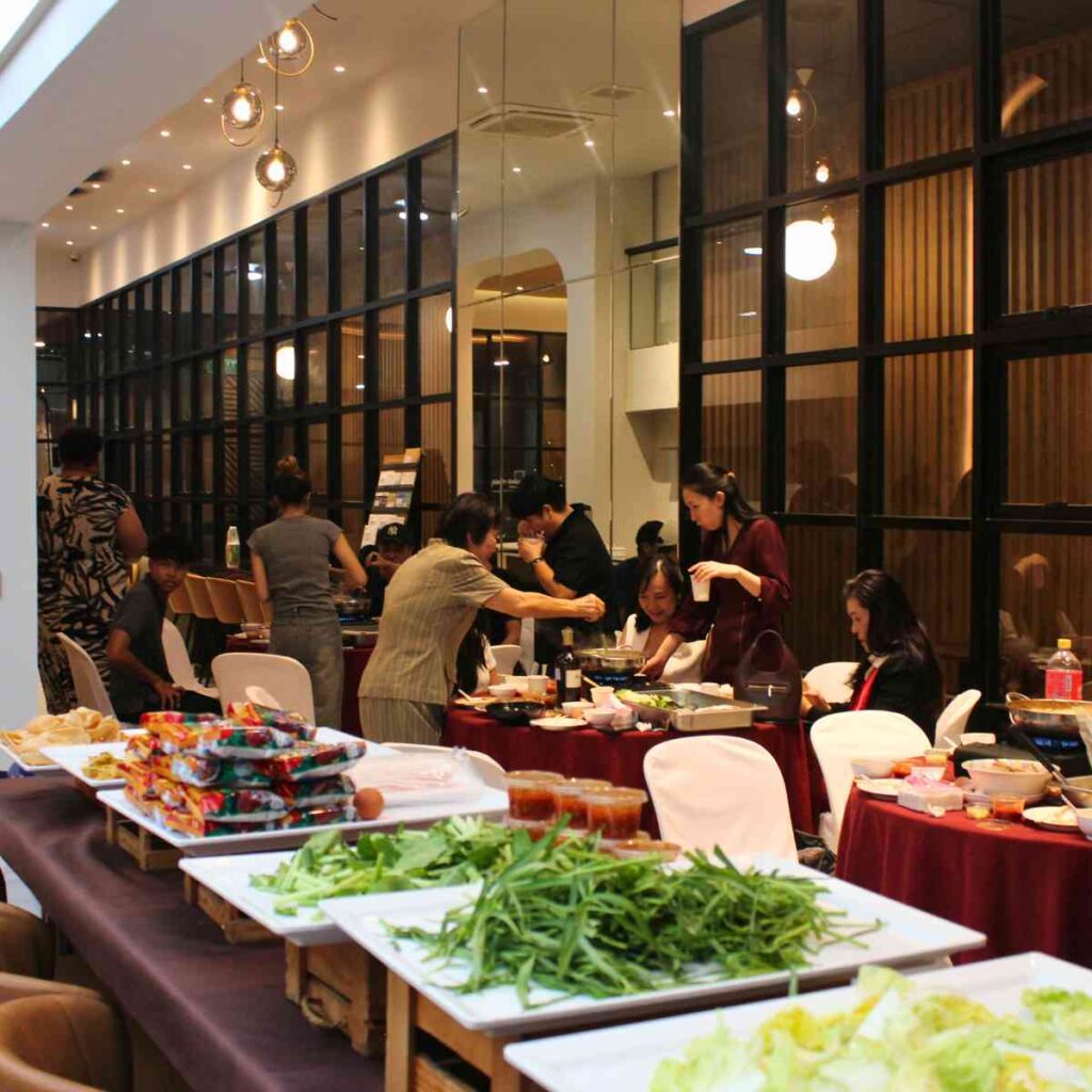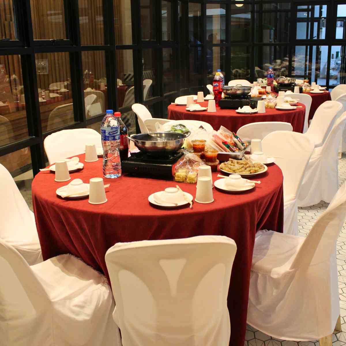 - จัดโต๊ะละ 6 ท่าน (1 หม้อ/โต๊ะ)